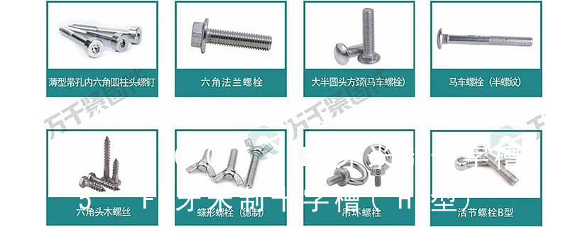 B:球面圓柱頭; C:圓柱頭; F(K):沉頭; H:六角頭;HW:六角頭帶墊圈; O:半沉頭; P:平元頭; R:半元頭;PW:平元頭帶墊圈; T:大扁頭; V:蘑菇頭;④ 螺釘牙型 A:自攻尖尾(日標第1種)疏 neck bolts 沉頭方頸螺栓 Flat counter sunk nib bolts 沉頭帶榫螺栓 Cross recessed pan head tapping screws 十字槽盤頭自攻螺釘 (如果在圖紙上看到標注# 2或# 20等,是指該螺絲的頭部適合2號或者20號的螺絲起子)